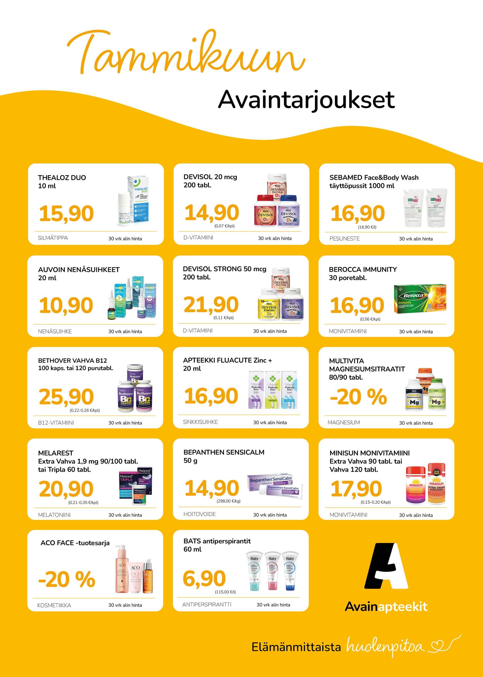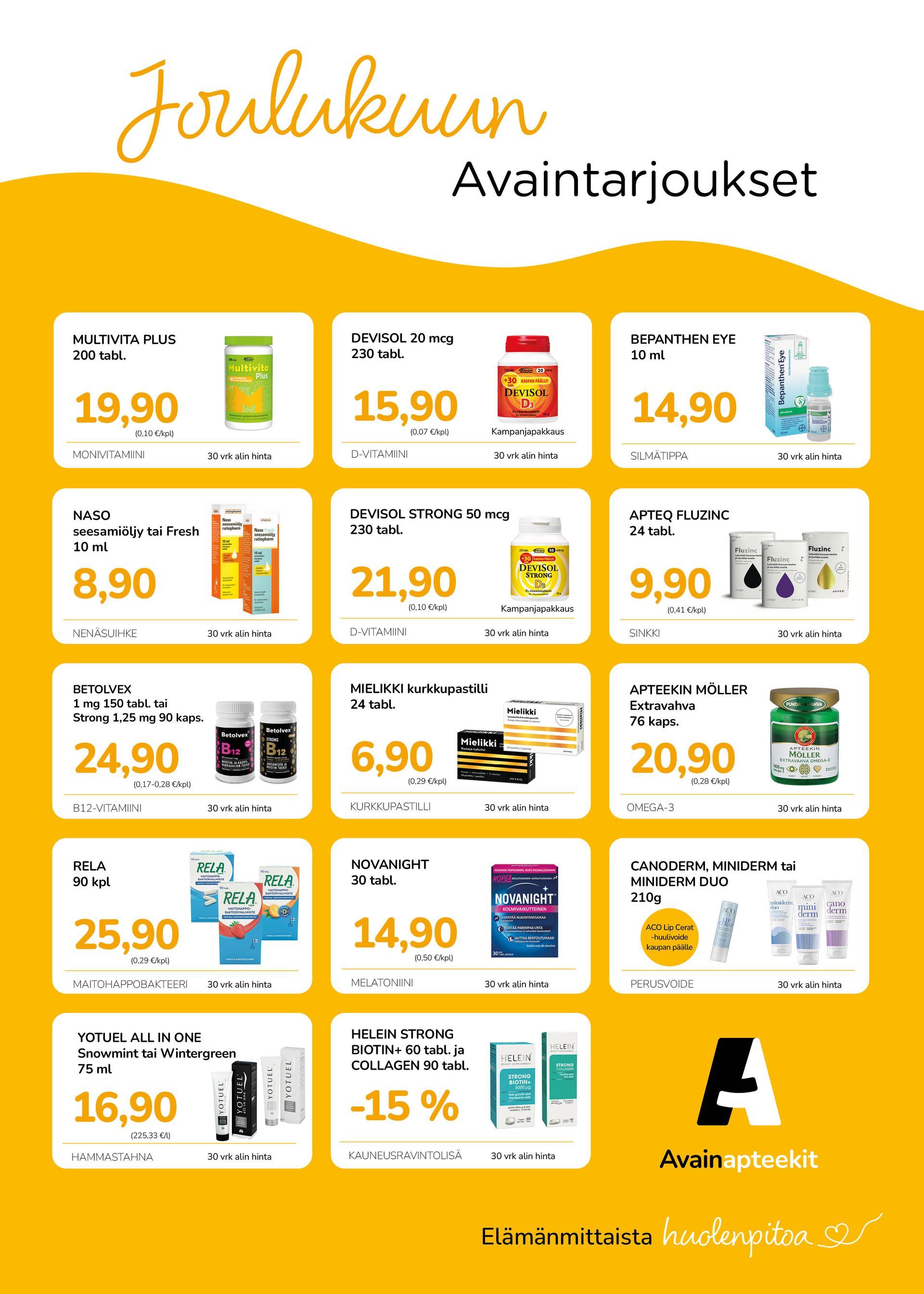 Lisäksi avainasiakkaana hyödyt avainasiakastarjouksista, joista ilmoitetaan neljä kertaa vuodessa ilmestyvässä Avainapteekit-asiakaslehdessämme.