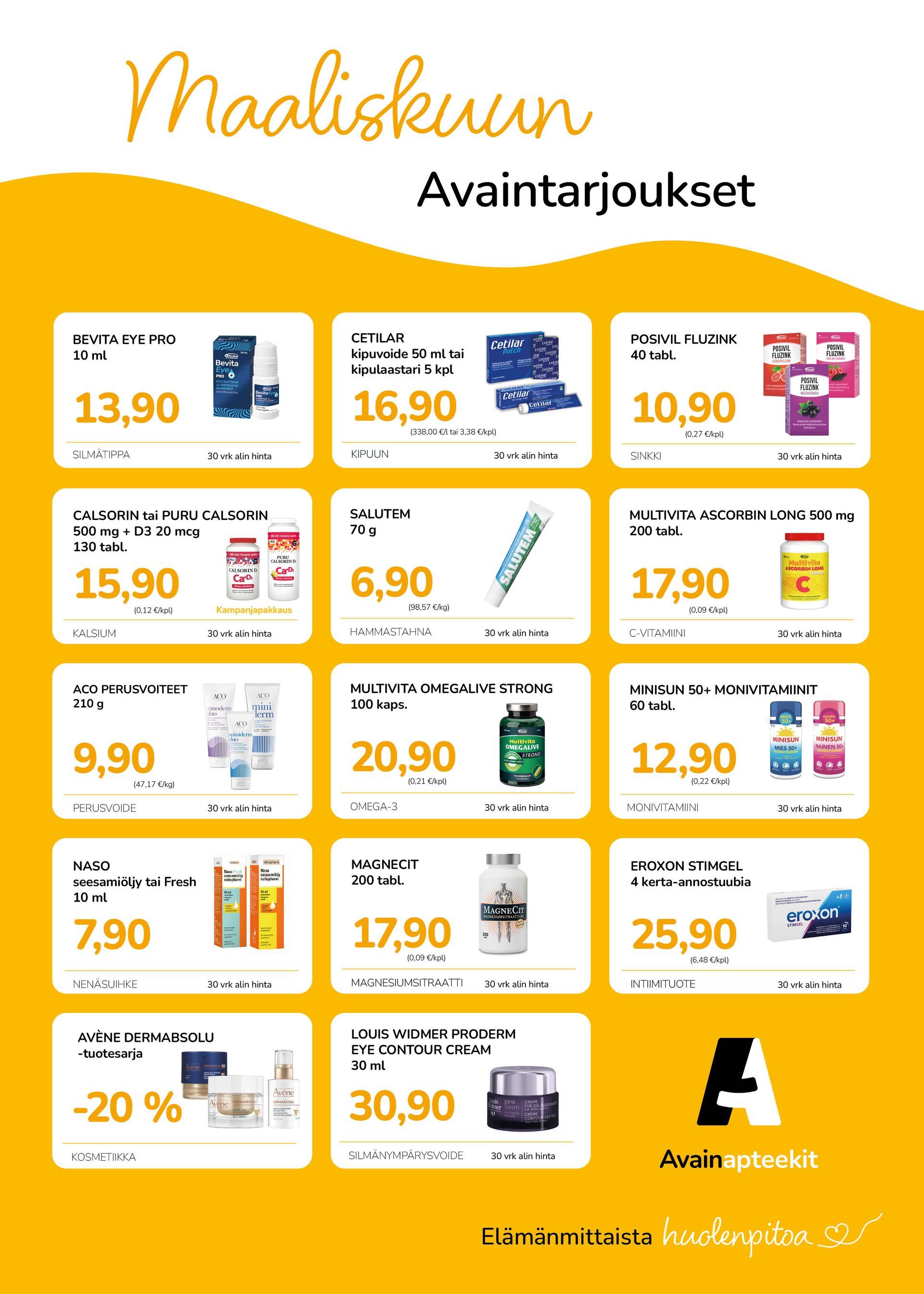 Kuusi kertaa vuodessa ilmestyvässä lehdessä esitellään kuukausittain vaihtuvat avaintarjoukset. Tarjoukset ovat voimassa kaikissa Avainapteekeissa. Kaikki ostotietosi tallentuvat oman Avainapteekkisi asiakasrekisteriin, mikä parantaa huomattavasti lääkehoidon turvallisuutta.